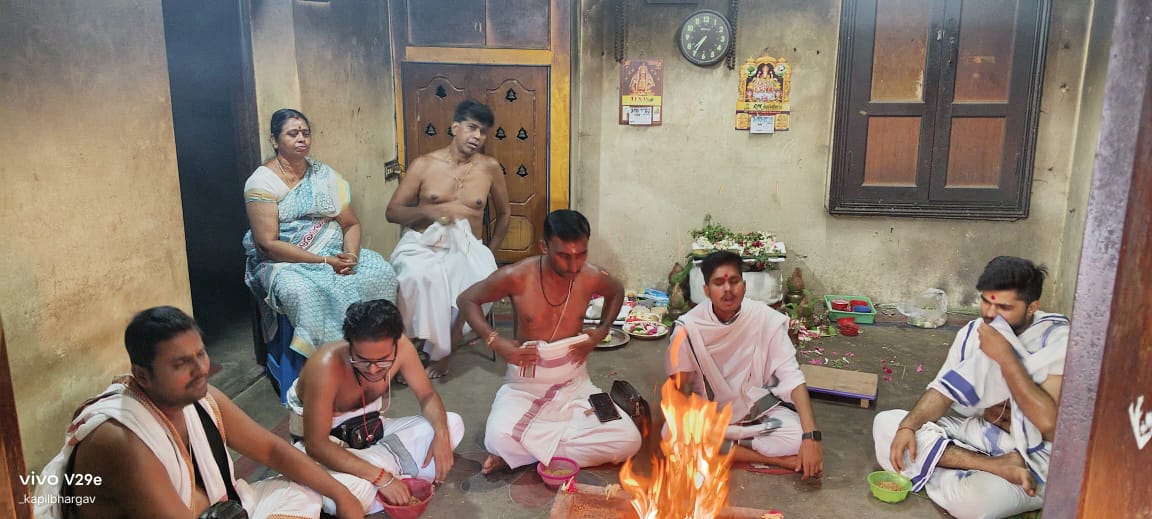 This Homa part is the crucial part of the whole process. To conduct Homa part, we need more pandits depending upon its “Aavarthi”. Aavarthi means counting system of all Homa mantras upto a specific number of times like 1000, 3000, etc. Generally, the most common method is, to do with 6 to 8 pandits for doing 1000 Aavarthi of Thilahoma.